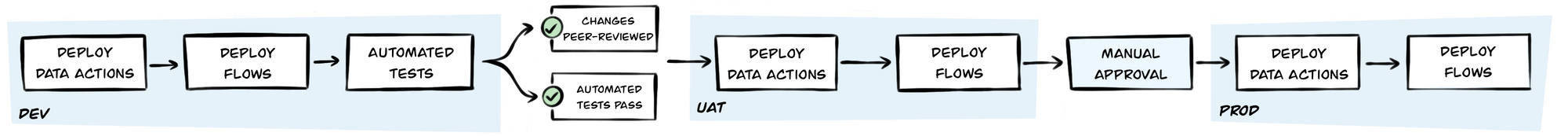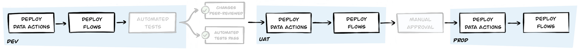 - Deployments of bots and their dependencies that are identical across environments. If it works in UAT, it will work in Prod.