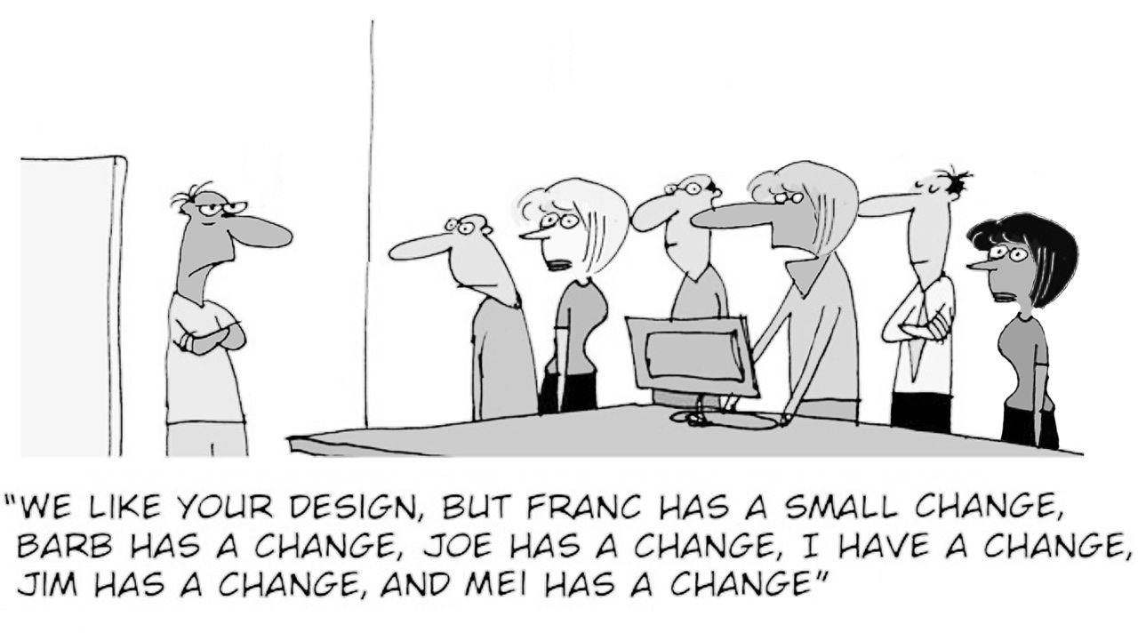 When people don’t have something significant to offer, or we don’t tell them what kind of feedback we're seeking, they tend to search for anything at all to mention… usually with good intentions. This is where “can we change the blue...” tends to come from 😩