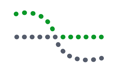 In the second image, do you see alternating columns of green- and grey-coloured circles? Each ‘set’ is determined by their shared colour, so what we see are circles forming ‘columns’.