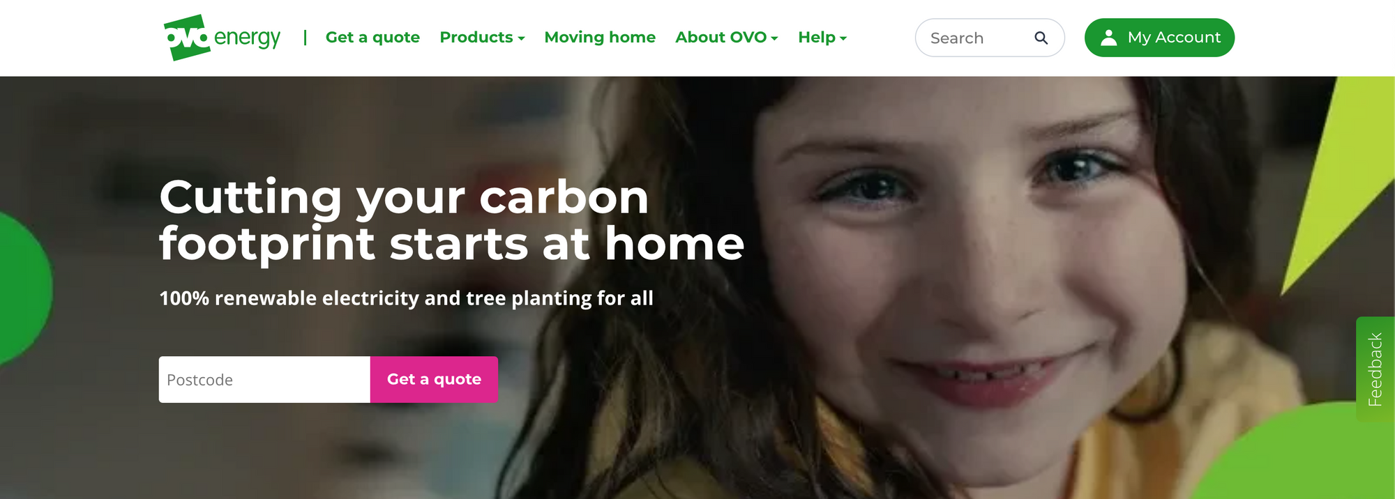 Let’s look at ovoenergy.com’s Primary Navigation links: they’re all green, and set in the same font face and size. This is the only component with these characteristics, making them a distinguished set which people recognise as something clickable and consistently positioned.